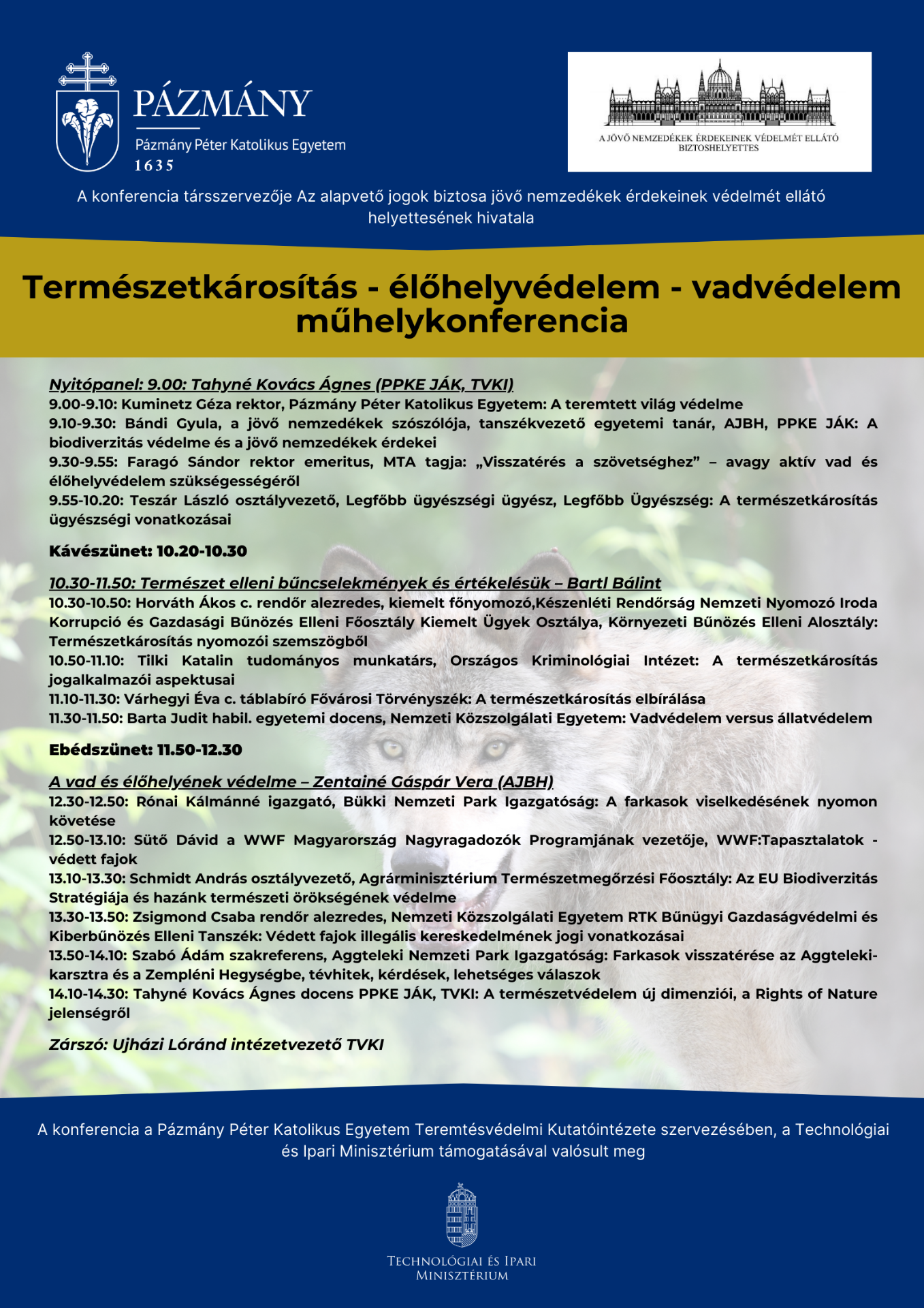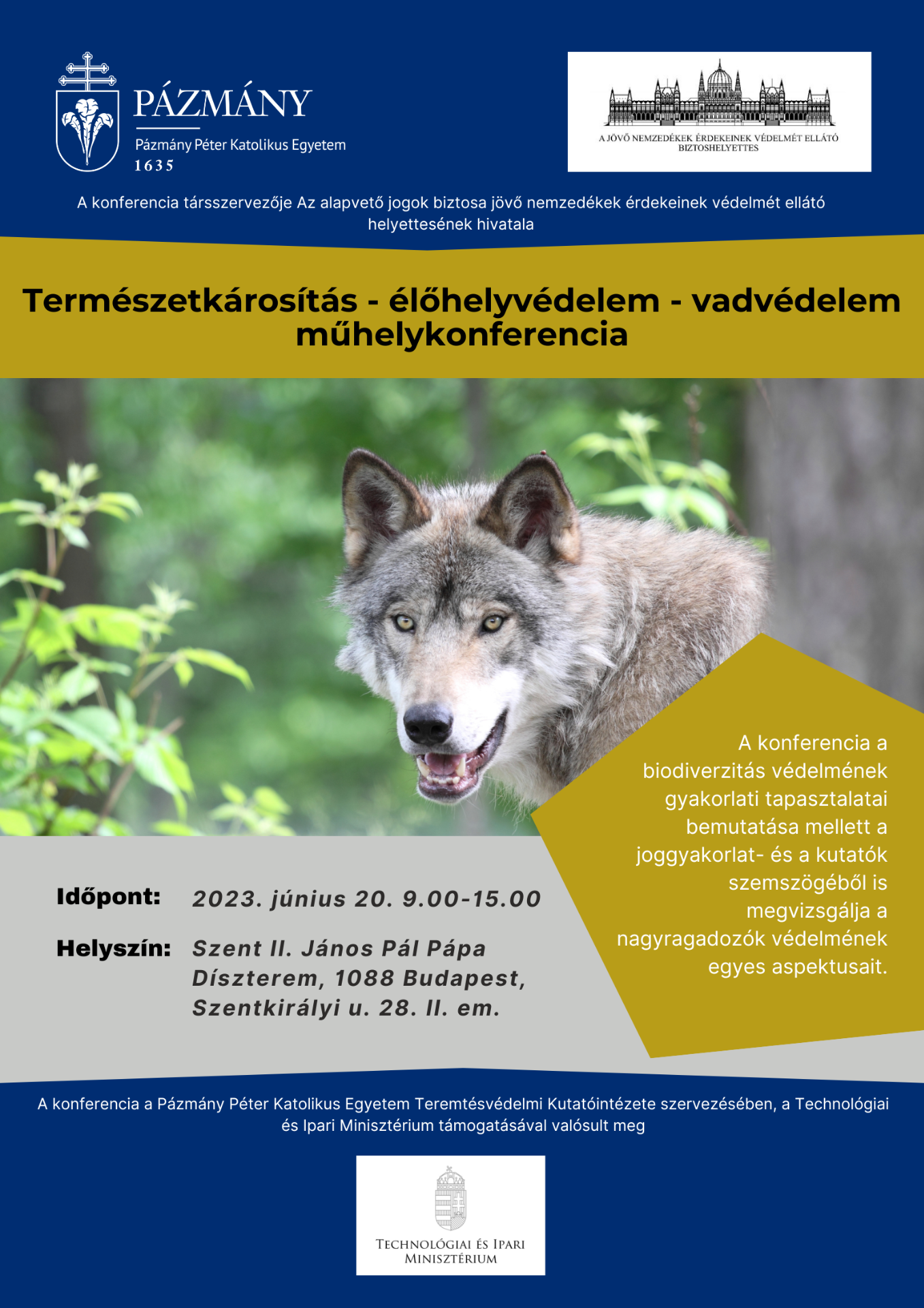 A Pázmány Péter Katolikus Egyetem (PPKE) Teremtésvédelmi Kutatóintézete valamint Az alapvető jogok biztosa jövő nemzedékek érdekeinek védelmét ellátó helyettesének hivatala szervezésében konferenciát rendeztek Természetkárosítás – élőhelyvédelem – vadvédelem címmel június 20-án, melynek apropóját az M237-es farkas kilövése adta.