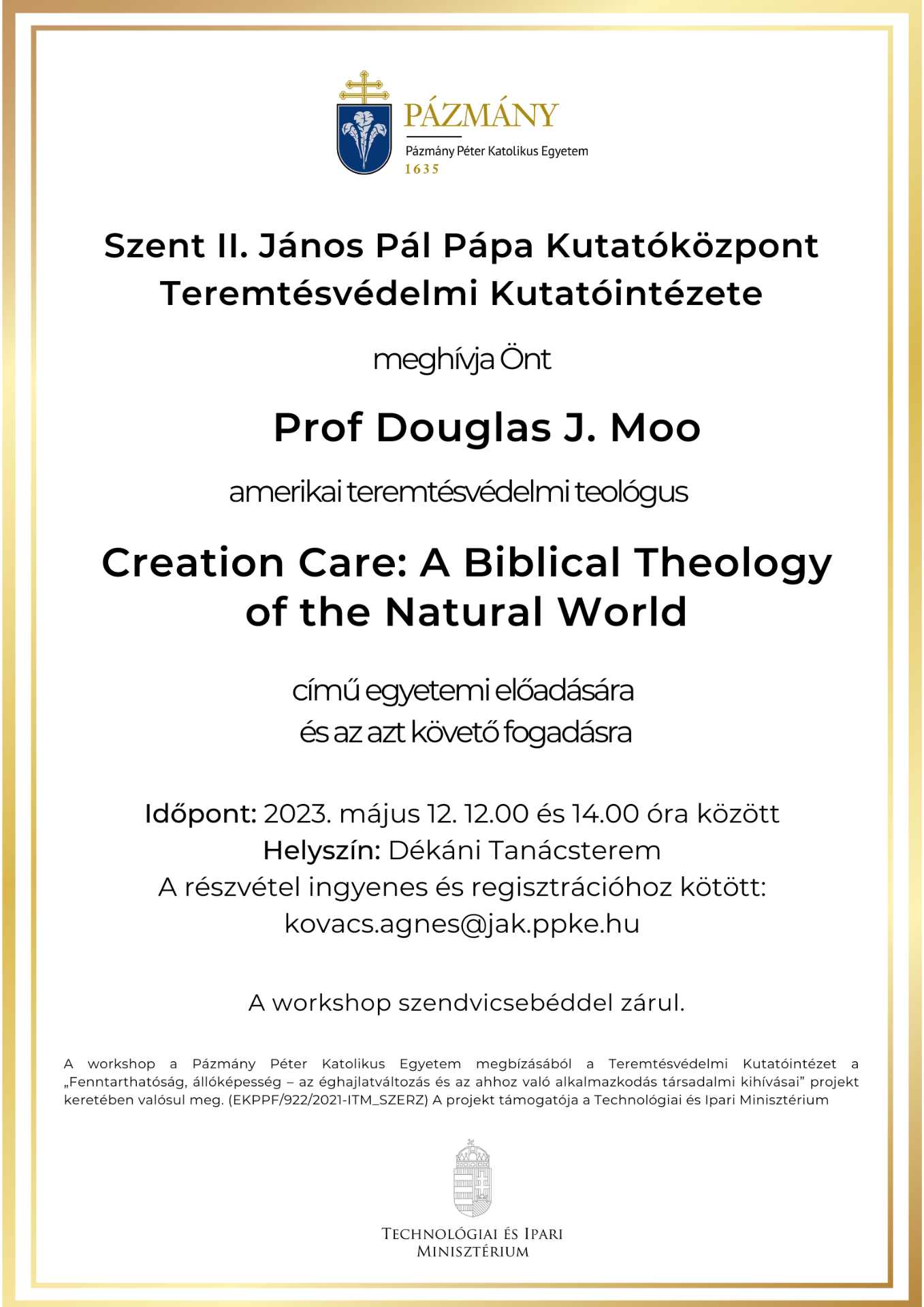 Prof. Douglas Moo tartott előadást a PPKE JÁK Dékáni Tanácstermében a PPKE - Teremtésvédelmi Kutatóintézet meghívására 2023.05.12.