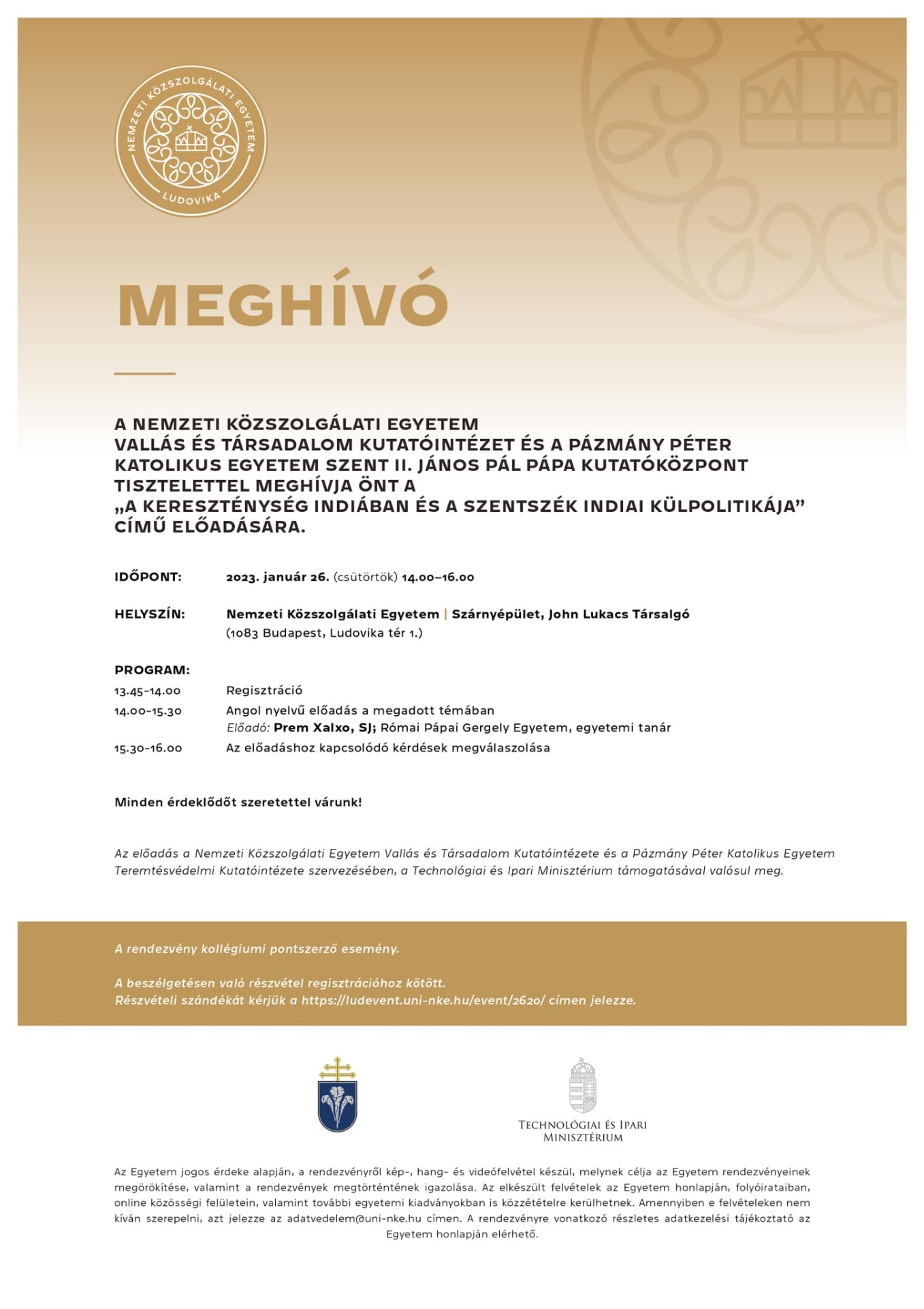 Nemzeti Közszolgálati Egyetem, Eötvös József Kutatóközpont, Vallás és Társadalom Kutatóintézetévek közös szervezésben tartott előadást